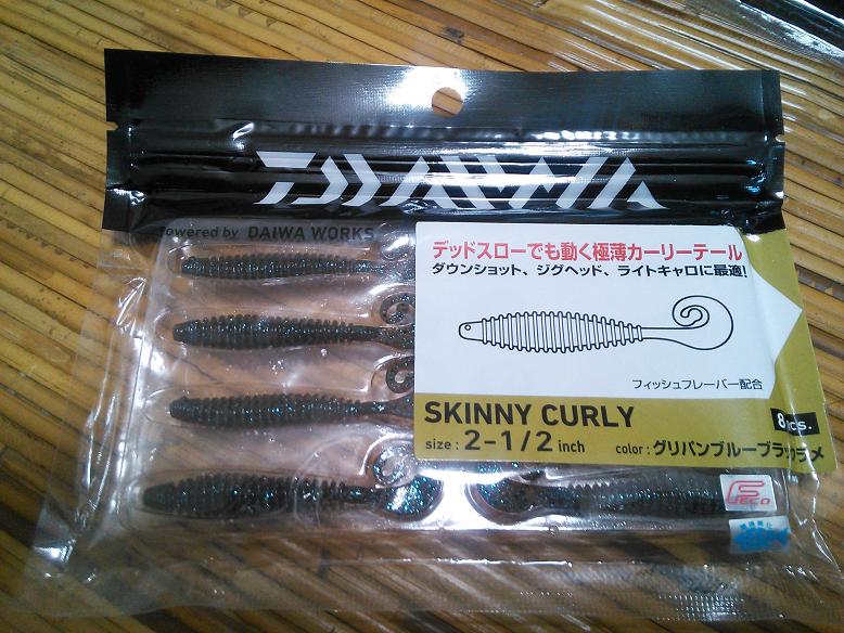 DAIWAの新作、スキニーカーリー!リング形状のワームでダウンショット、キャロと定番のリグで抜群の釣果でした^^